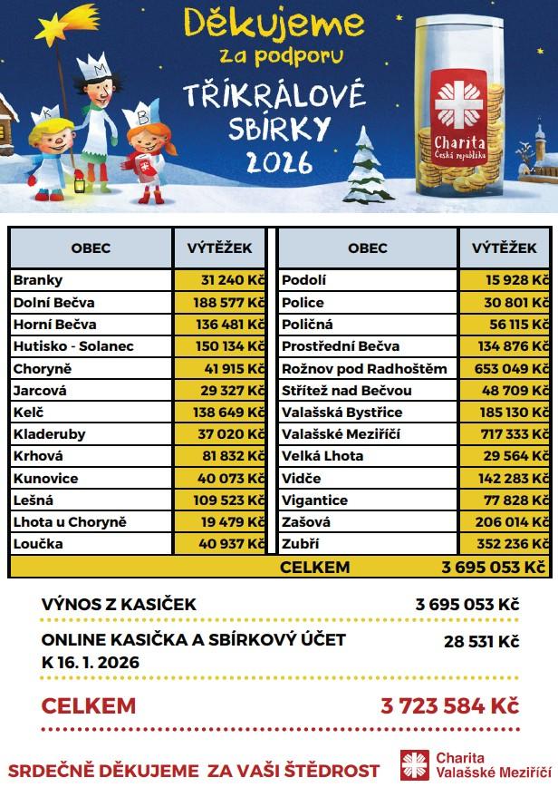 Výsledek Tříkrálové sbírky 2026